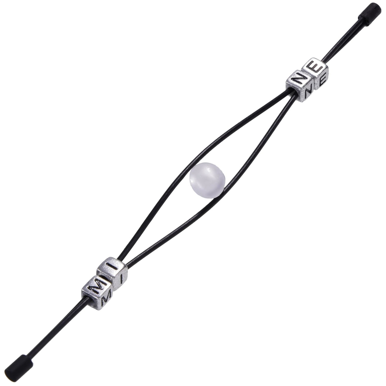 The sleek black rods flex gently for controlled sensation, while silver beads etched with M-I-N-E glide along the surface - a bold declaration of possession. As the beads move closer together, the pinch intensifies, blending tension with surrender. Designed for those who embrace ownership and control, these rods make an unmistakable statement of intent.
